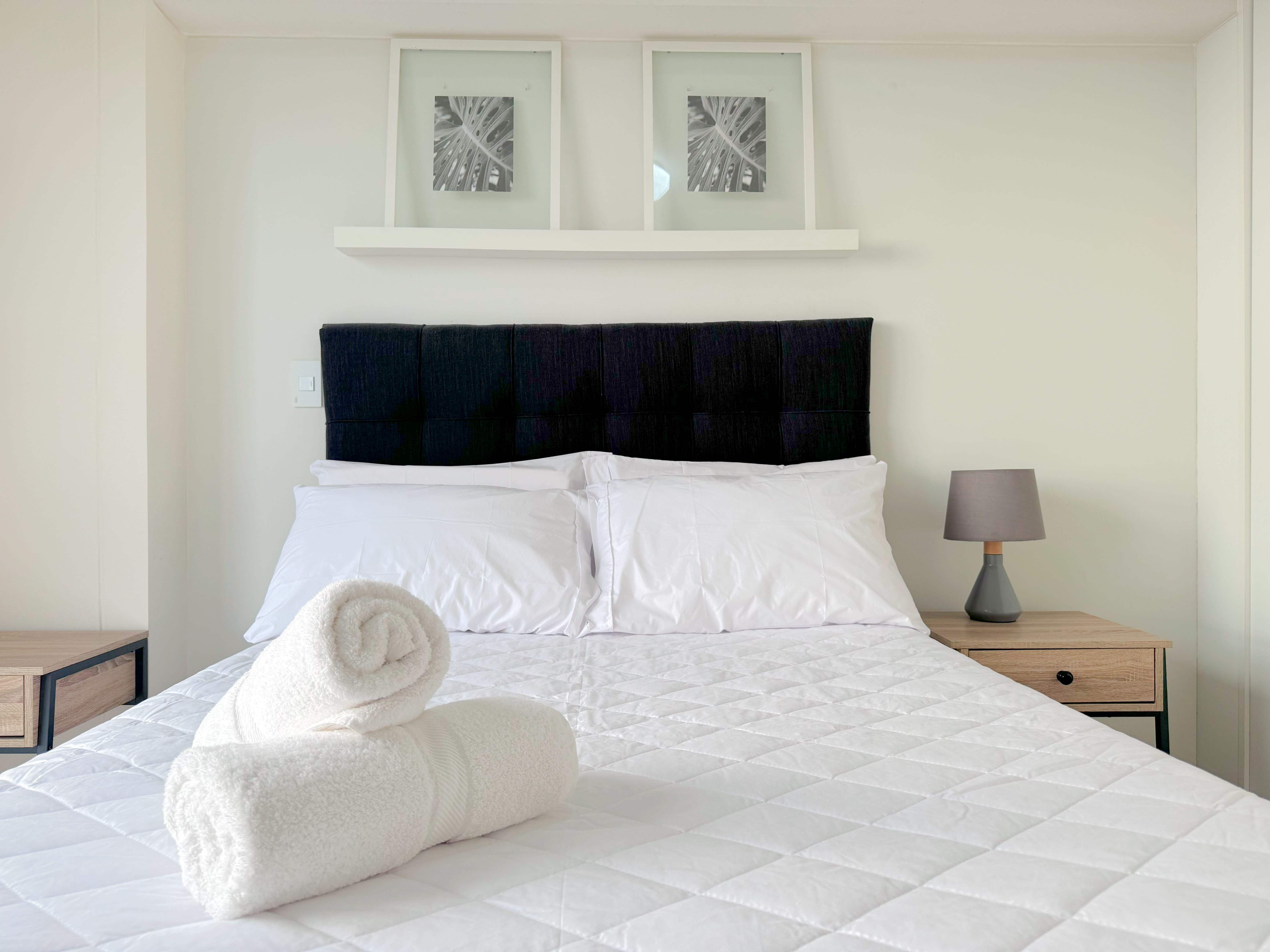 El tranquilo cama, con una cama cómoda, armario moderno y Smart TV de 50 pulgadas, corona la experiencia con su cautivador horizonte marino a través de la ventana.