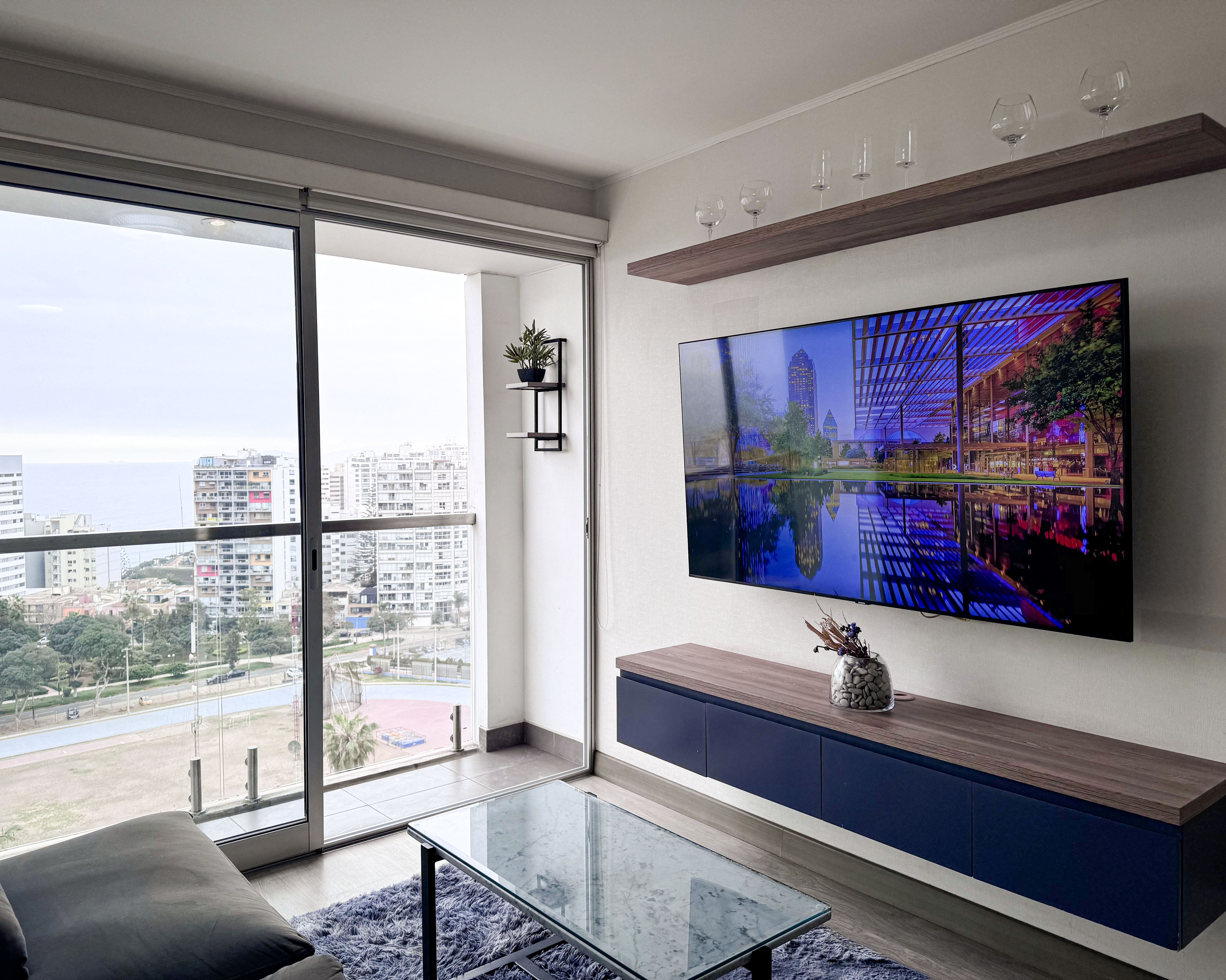 Televisor de alta definición con pantalla de 65 pulgadas y Netflix, servicio de cable prémium