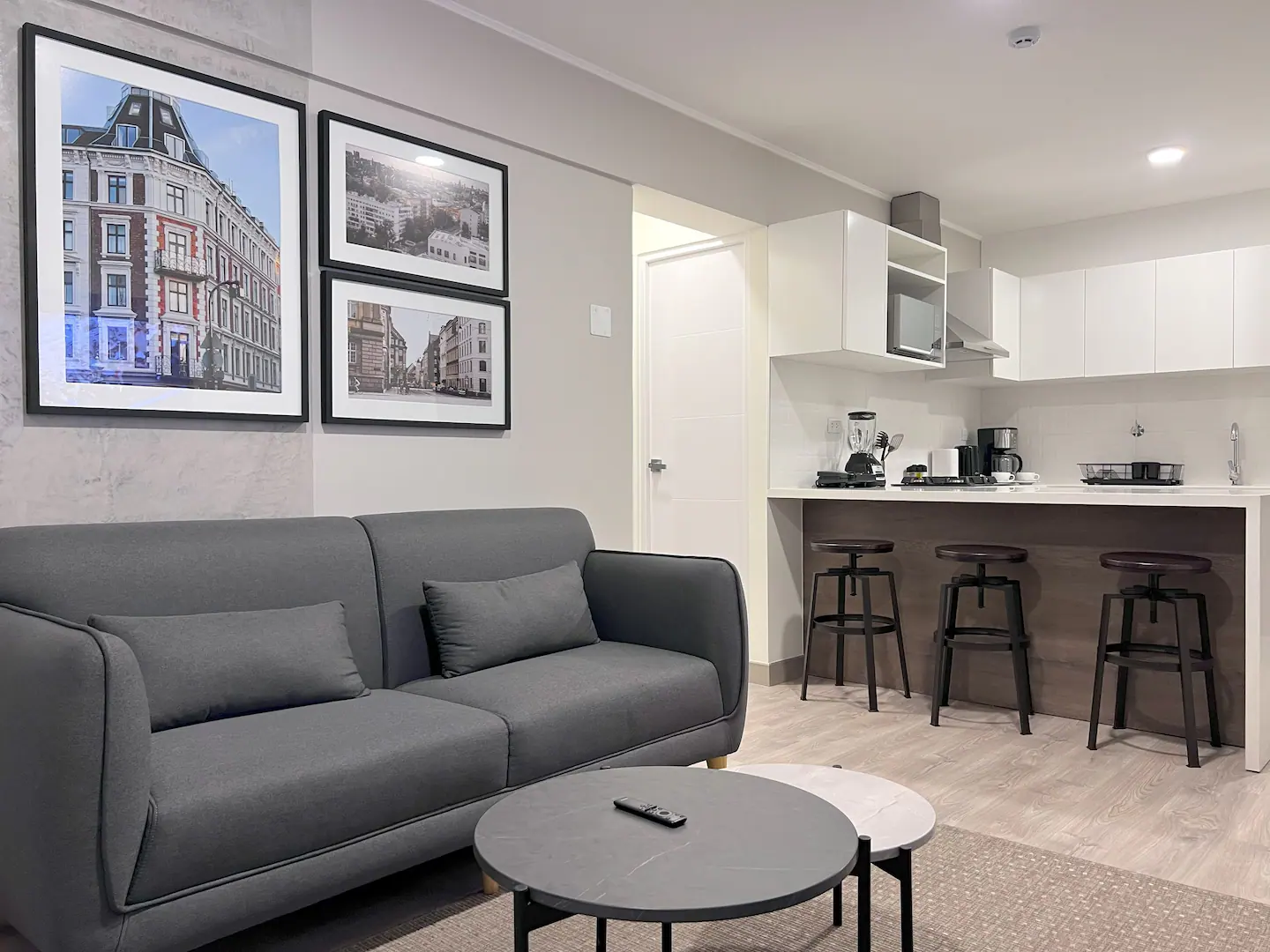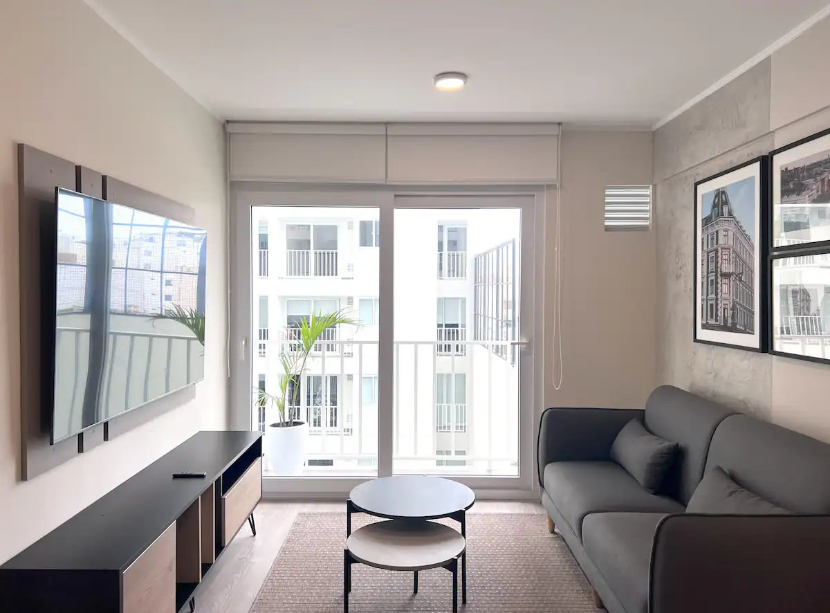 El elegante diseño del departamento cobra vida con características como una Smart TV de 65 pulgadas, muebles de lujo, dos baños completos y una cocina lista para tus aventuras culinarias.