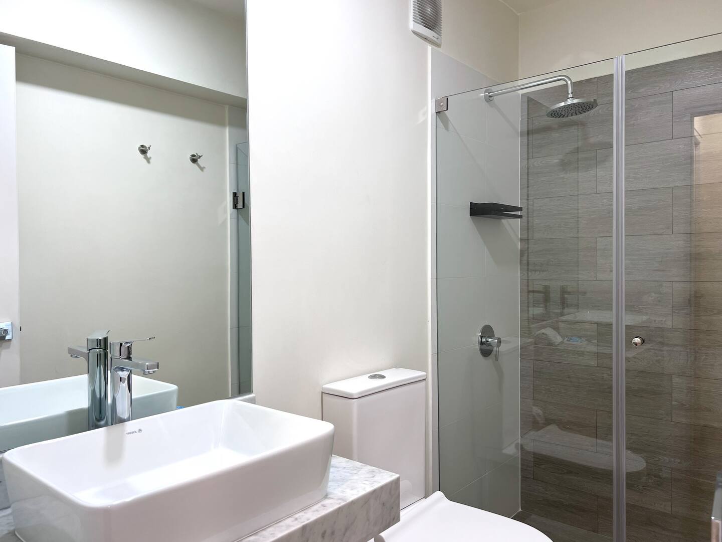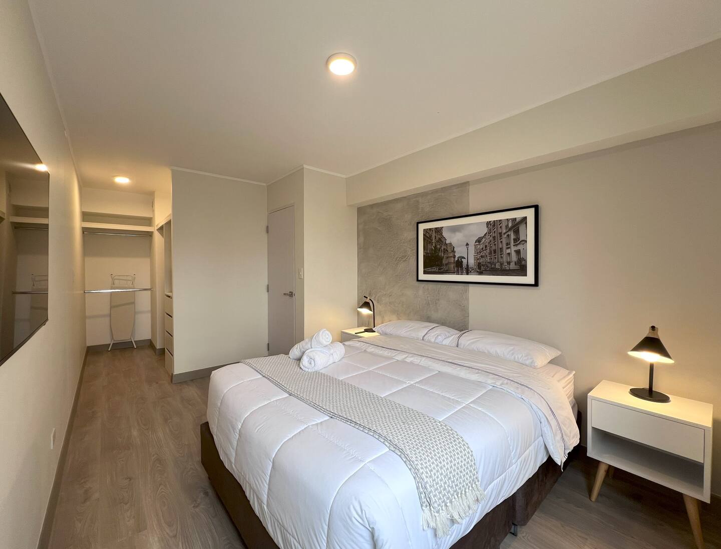Las habitaciones serenas, cada una con camas queen, amplios vestidores, y ambas equipadas con Smart TVs de 50 pulgadas, completan la experiencia.